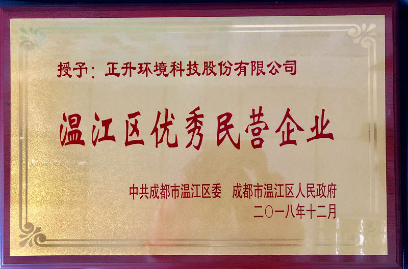 2018年12月28日上午,从温江区民营经济健康发展大会现场传来喜讯,正升环境科技股份有限公司作为温江区优秀民营企业,在现场予以隆重表彰。