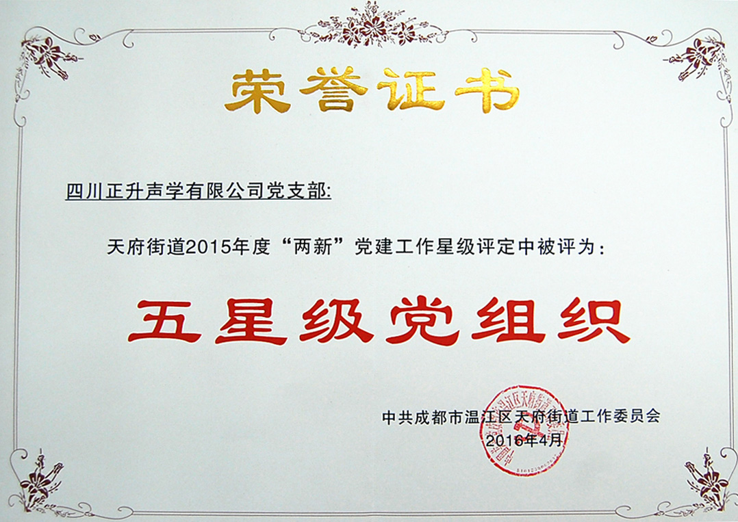 在温江区天府街道新市民中心召开的天府街道2015“两新”党建工作暨星级评定工作总结大会上,公司党支部被评为天府街道2015年度“两新”党建工作“五星级党组织”,并颁发证书。公司党支部书记杨煜参会。
